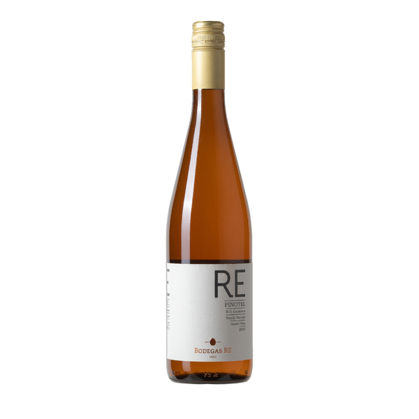 El Vino Bodegas RE Pinotel es un vino naranjo que presenta un color damasco, algo turbio, lo que sugiere una elaboración que podría incluir un proceso de maceración con las pieles. En nariz, ofrece una variedad de notas aromáticas que incluyen espárragos, piña verde, limón y crema ácida, creando un perfil fresco y vibrante.